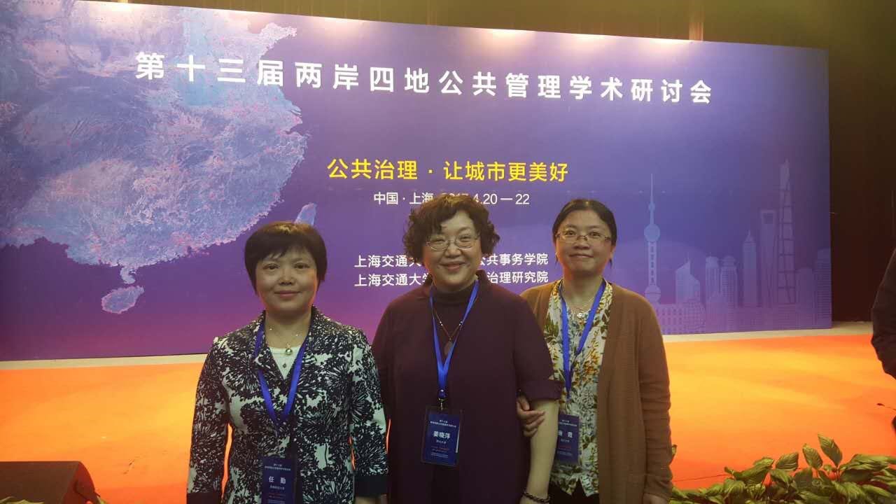 第十三届“两岸四地公共管理学术研讨会”由上海交通大学国际与公共事务学院和上海交通大学中国城市治理研究院承办,会议于2017年4月20日至23日在上海交通大学徐汇校区成功召开。本次会议的主题是“公共治理:让城市更美好”。围绕主题本届会议设置3场主题报告,分别由南开大学副校长朱光潜教授、中国人民大学英国正版365官方网站院长杨开峰教授、台湾警察大学警政管理学院院长章光明教授演讲;会议还设置了10个分会场,举行了4场分组讨论。我院任勤教授参加了此次会议,并在“公共政策与社会保障”分会场做了题为“社会嵌入理论视角下智慧养老问题探析”发言。“两岸四地公共管理学术研讨会”由两岸四地学者共同倡导发起,自2005年由中国人民大学英国正版365官方网站首次举办以来,到2016年已经在大陆、澳门、台湾和香港四地举办了12届。该研讨会在两岸四地学人中产生了重要影响,成为学术交流的重要平台和展示华人地区公共管理研究成果的重要窗口。