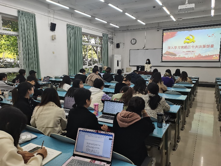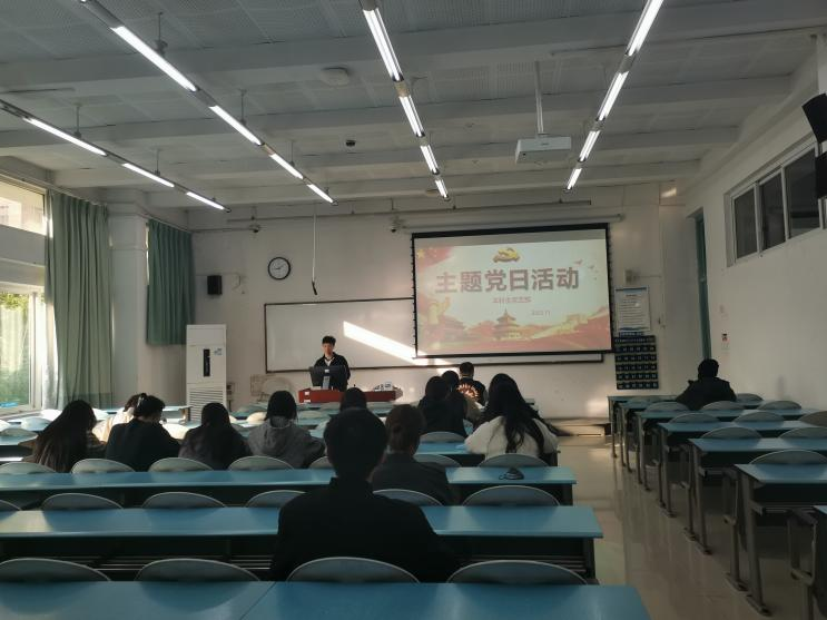 2022年11月22日下午4时,英国正版365官方网站2021级研究生党支部在颐德楼H103教室组织召开了“深入学习党的二十大决策部署”十一月主题党日活动。党支部全体党员、发展对象和入党积极分子全体到会。