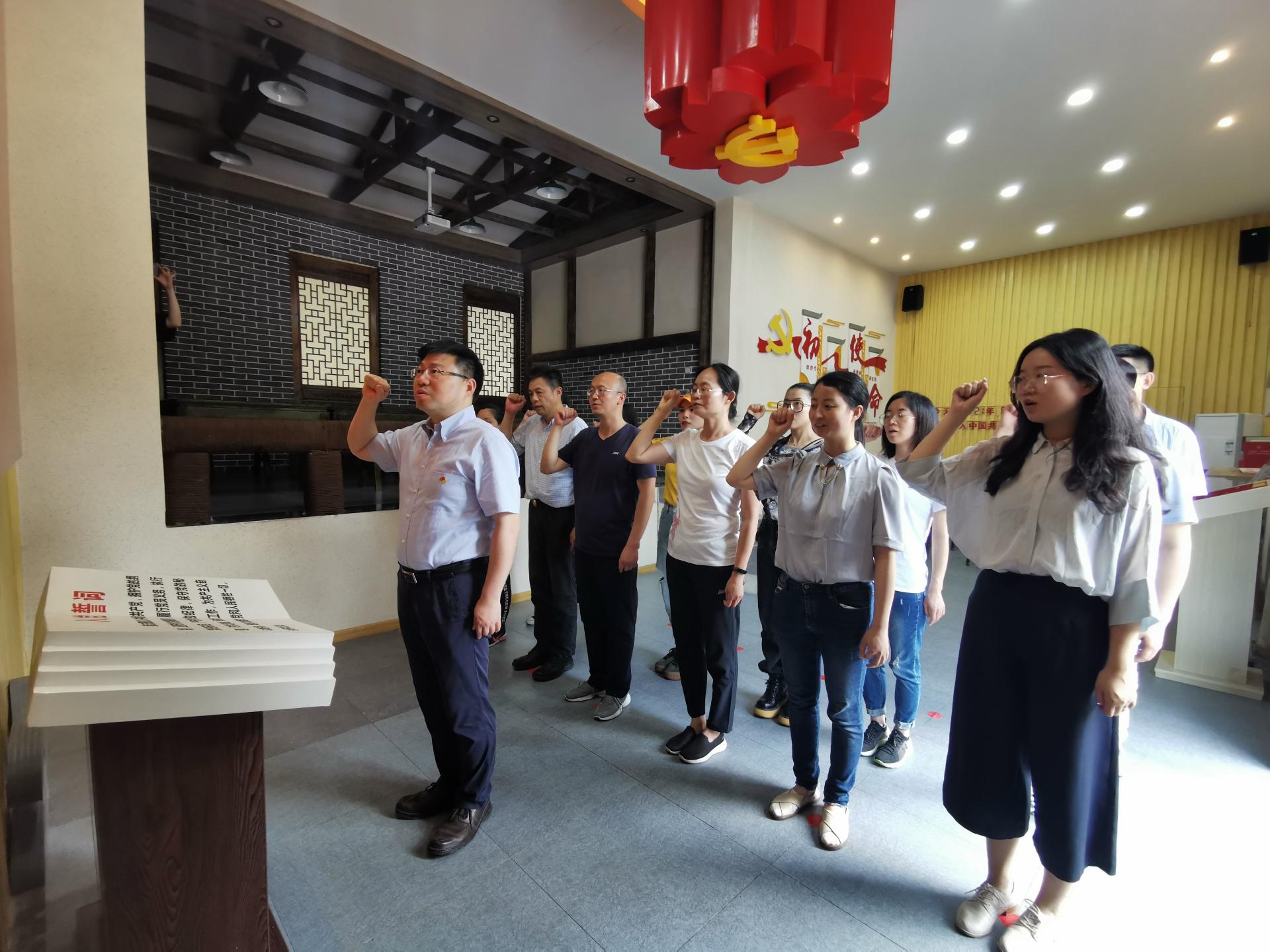现场教学环节中,学院教职工走进“核工业的辉煌史”“核聚变反应”“中国第一座人造太阳装置——中国环流器一号”“聚变先人——李正武院士先进事迹”等展区,倾听博物馆讲解员的精彩讲解,深度了解了中国核聚变博物馆的“前世今身”,直观感受了“中国环流器一号”装置(即中国第一座人造太阳实验装置)、“中国环流器新一号”装置等。通过学习,追忆“三线”核工业科技工作者在乐山的峥嵘岁月和取得的辉煌成就,感悟共产主义信仰力量。老一辈科技工作者“艰苦创业、无私奉献、团结协作、勇于创新”的“三线精神”和“事业高于一切、责任重于一切、严细融入一切、进取成就一切”的核工业精神,深深感动和激励着每一个人,大家实地接受了一场深刻的爱国主义和革命传统教育,进一步坚定了理想和信念。在郭沫若纪念馆,分党委书记赵海程带领全体党员教师在党旗前庄严宣誓,共同重温入党誓词,重忆入党初心,坚定为党和人民奋斗终身的理想信念。
