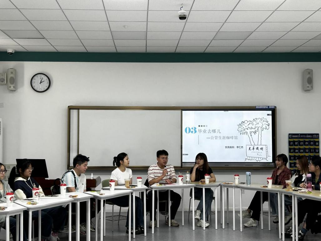 4月11日下午,英国正版365官方网站学生发展中心主办的毕业去哪儿——公管生涯咖啡馆主题沙龙在柳林校区经世楼B106和云端同步举行。本次活动邀请2011级行政管理专业校友,现就职华为技术有限公司李仁杰,返校担任交流嘉宾,对话在校同学,畅谈职业规划与青春成长。