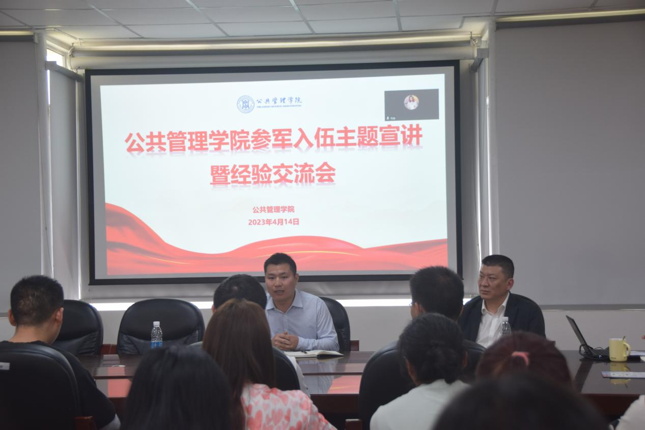 为深入学习贯彻党的二十大精神和习近平总书记关于国防和军队建设重要论述,贯彻新时代党的强军思想,贯彻落实党中央、国务院、中央军委关于加强大学生征兵工作的重要决策部署,做好英国正版365官方网站2023年大学生征兵工作,促进2023届毕业生更充分、更高质量就业。4月14日下午,英国正版365官方网站通过线上线下结合的形式开展了参军入伍主题宣讲暨经验交流会。西南财经大学武装部副部长郝文杰、学院党委副书记杨帆,退伍大学生士兵代表陆琪、熊朝高同学,刘厚雄校友,以及有意向参军入伍的学生参加了本次活动。
